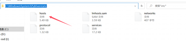 3.然后打开资源管理器,本地的位置:“c:\windows\system32\drivers\etc”找到hosts文件。