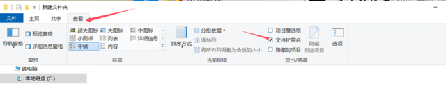 点击地址栏上方的“查看”,把“文件扩展名”前面的小勾打上对号(如果已经打上的就不用管了)