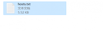 接着会看到刚才保存的hosts文件变成了hosts.txt,我们把.txt去掉,直接变成:hosts,选中以后,ctrl+c复制文件