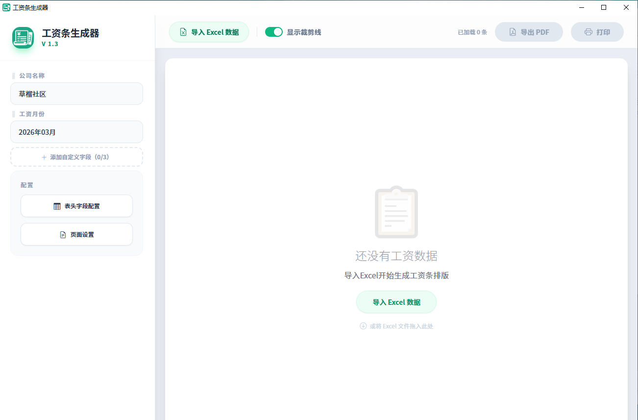 ● 工资条生成器 V1.3 是一款专为企事业单位财务人员、人力资源(HR)部门设计的轻量化、高效率工资条制作工具。它精准针对传统使用 Excel 手动拆分、合并、排版工资条时的重复劳动和易错痛点,提供一键式自动化解决方案。