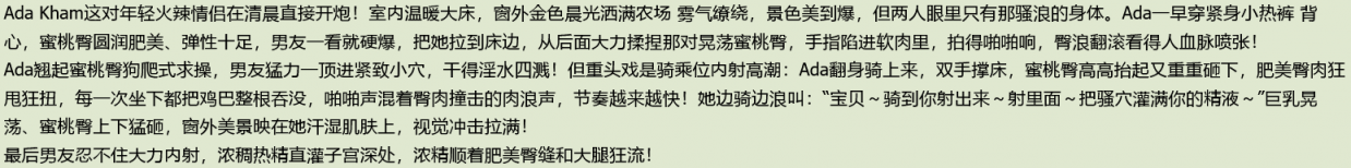 【影片名称】:2520-3005顶级蜜桃臀,超绝臀腰比「Ada Kham」超绝蜜桃臀晨炮骑乘狂欢!和猛男男友狂干,晨光下操到高潮