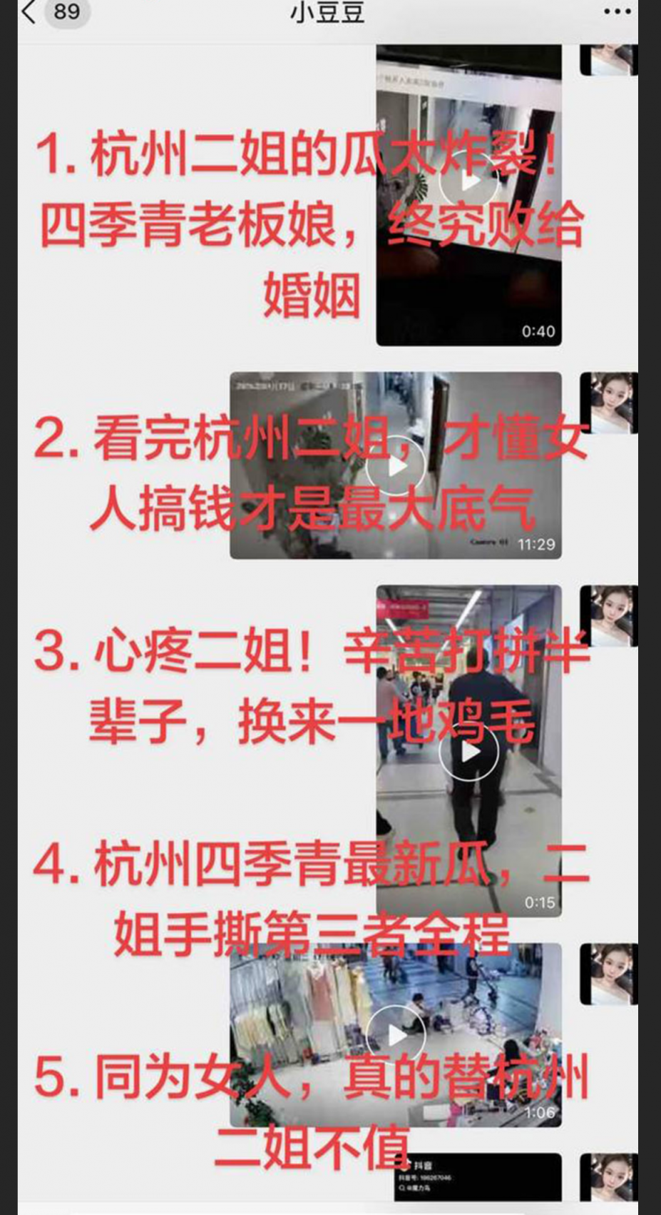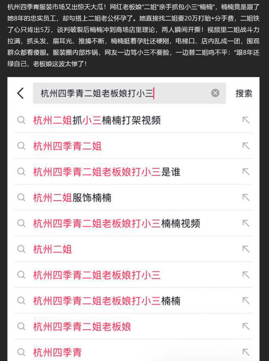 【1】❤️杭州四季青老板娘 二姐 怒撕小三 楠楠 8年老员工怀孕索20万打胎费 当场互殴撕头发 视频火爆全网!