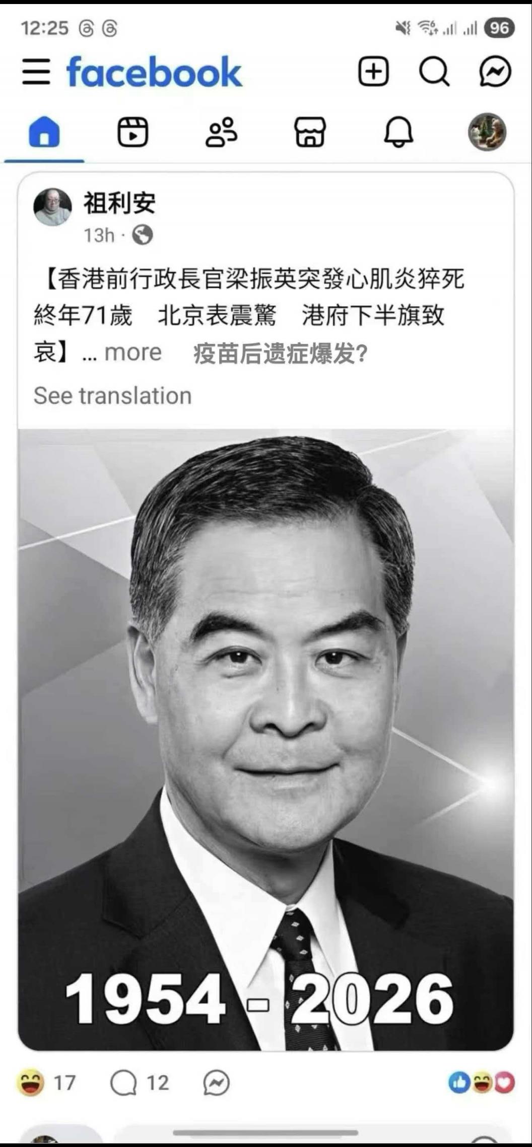 梁振英死了?